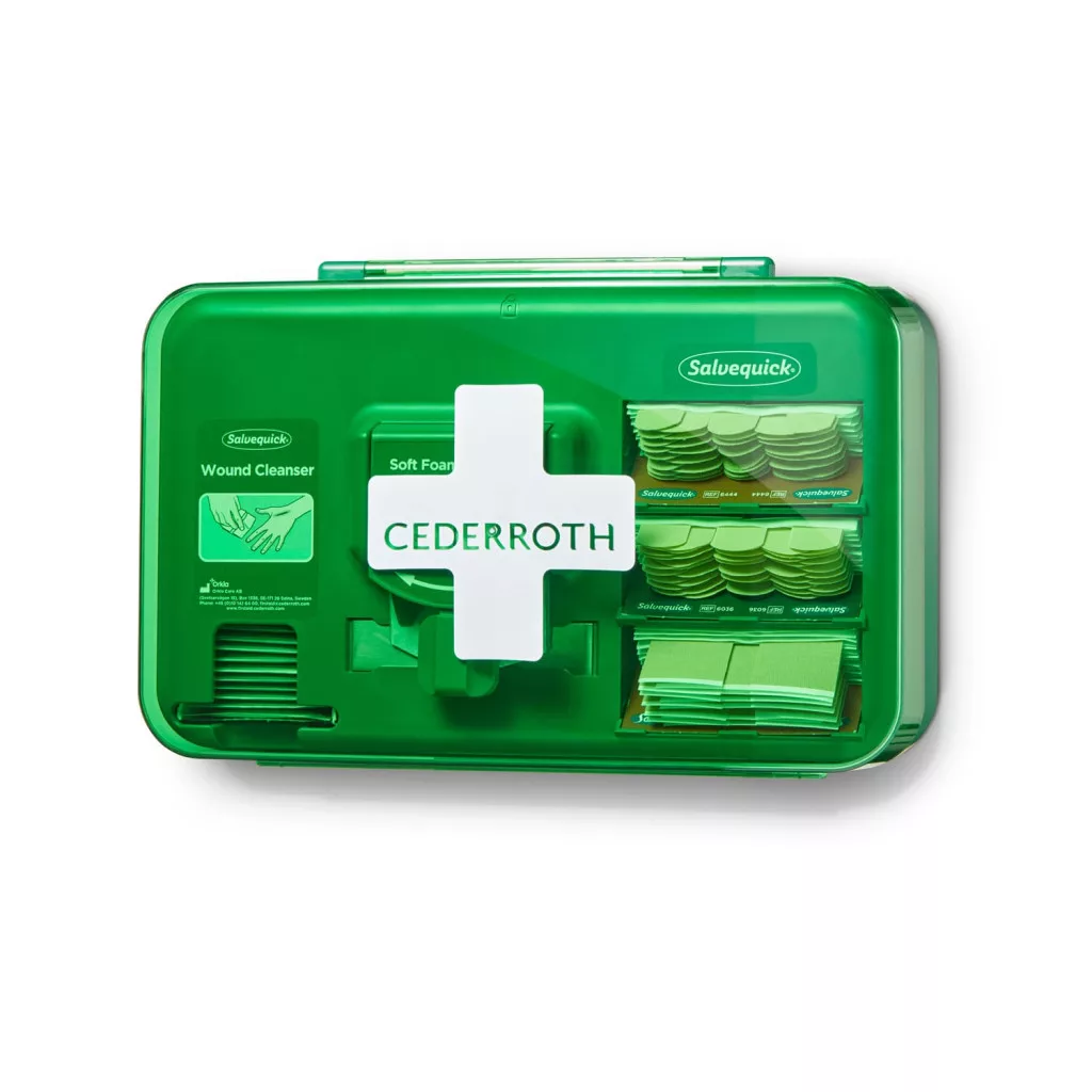 Minden, amire szüksége lehet a kisebb sebek ellátásához egy praktikus adagolóban. A kötszeradagoló okos kiegészítője az elsősegélynyújtó állomásnak, és ott lehet elhelyezni, ahol nagy a sérülések kockázata. Kék színű téphető/vágható ragtapaszt, és öntapadó, ragasztómentes sebtapaszokat tartalmaz, amelyek még vízben is kiválóan fennmaradnak. Minden termék könnyen hozzáférhető, és a zöld, átlátszó fedél védi a portól és a nedvességtől. Zárható, az utántöltéshez speciális kulcsra van szükség. Minden termék CE-jelöléssel ellátva.
