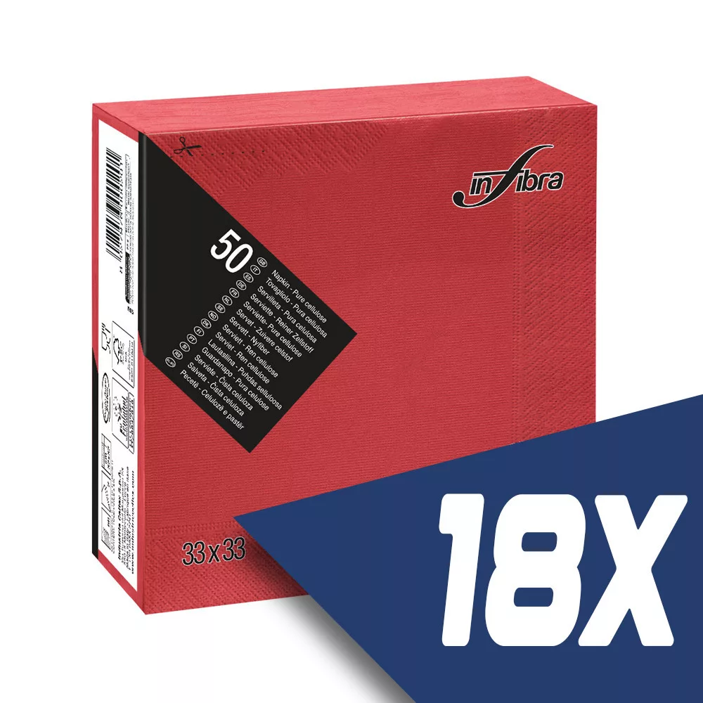 - 2 rétegű szalvéta- 1/4 hajtogatott- 33x33 cm/lap- piros színű- 50 lap/csomag