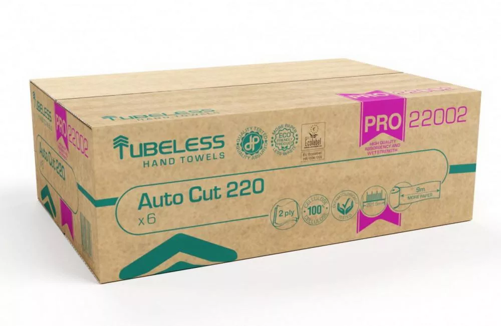 Tubeless AUTOCUT PRO 220 tekercses kéztörlő 2 rétegű, fehér, 100% cellulóz, 221,5m, 6db/karton