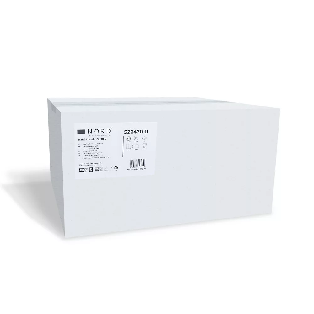 V hajtogatott kéztörlő 2 rétegű, fehér, 24x21 cm, 100% cellulóz