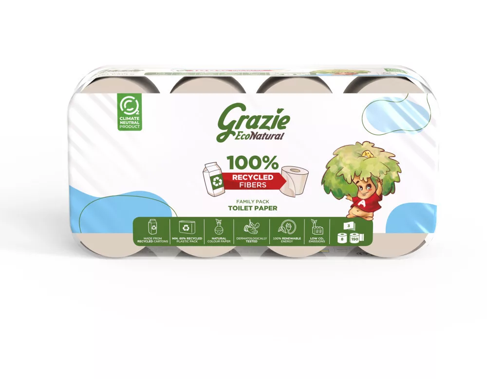 Lucart GRAZIE NATURAL háztartási toalettpapír 3 rétegű, 8 tekercses